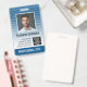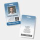 Azul y blanco: diseño empresarial moderno que destaca los logotipos de su oficina y el nombre de su empleado. Este moderno diseño de oficina también incluye un número de identificación de placa, fecha de caducidad y enfermera u otro título. BACK: Puede agregar un código de barra de exploración en la parte posterior y un lugar para agregar información si la insignia se pierde. También puede cambiar el color del fondo. Haga clic en el botón personalizar y elija un color de fondo para la parte frontal y posterior.