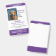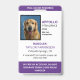 ID de perro de servicio vertical en morado y blanco. Agregue una foto de su perro de servicio junto con el nombre, el título y el número de registro. Agregue también el nombre del controlador y la información de contacto.