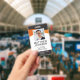 Un diseño de identificación de empleado profesional que se puede personalizar con el nombre de su empresa.
