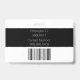 En la parte posterior del distintivo se incluye información adicional sobre empleados o empresas impresa sobre un fondo negro, con un código de barras de ejemplo colocado en la parte inferior. Puede reemplazar el código de escaneo por otra imagen, como el logotipo de un personalizado.