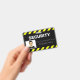 Una línea de alerta o estilo de signo de advertencia en negro y amarillo enmarca las partes superior e inferior del identificador, lo que lo hace muy visible y fácil de reconocer.