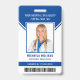 Esta insignia de identificación azul personalizada incluye una foto del empleado, nombre, título, nombre del hospital/empresa, ubicación, número de identificación del empleado y código de barras. El fondo es azul y blanco. La parte posterior de la insignia incluye su logotipo y campos de texto personalizado adicionales para obtener información u otros detalles. Perfecto para instalaciones médicas o corporativas que necesiten identificación de seguridad.