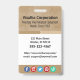 Creador de identificaciones verticales con dos tonos de beige más fondo beige moteado. Todos los elementos son cambiables o removibles. Los elementos del frente incluyen: foto del empleado, nombre del empleado, departamento del empleado, nombre de la empresa y eslogan, dirección de la empresa, número de teléfono, sitio web y direcciones de correo electrónico. La parte trasera del diseño también tiene información de la empresa que es totalmente personalizable. También disponible en orientación horizontal. Ranura en la parte superior para cordón. Todos estos elementos se pueden cambiar o eliminar.