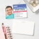 Esta tarjeta de identificación infantil es perfecta para su hijo. Contiene colorantes azules, junto con texto negro en la parte delantera para la dirección, estadísticas como altura, peso, tipo de sangre y fecha de nacimiento. También hay espacio para añadir números de contacto de emergencia y nombres. ¡Reemplace la imagen de plantilla con la de su hijo también! En la parte posterior de la tarjeta hay espacio para otra información importante que incluye alergias, necesidades especiales, apodos, afecciones médicas, etc. Muestra de fotografía © Storytree Studios, Stanford, CA