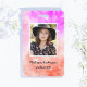 Identificación con fondo de acuarela roja y morada para salón, spa, artista de maquillaje, estilista, empleado, personal. Utilice la opción personalizar esta plantilla para cambiar el texto en la parte delantera y trasera. Para ajustar la foto y el texto, use la opción personalizar más. Para cualquier ayuda para cambiar el texto, use la opción de mensaje debajo del nombre de nuestra tienda. Crédito de la foto: SnapwireSnaps en Pixabay.com