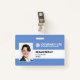 Una moderna insignia horizontal de identificación del personal de negocios que incluye una foto del empleado, su nombre y su puesto de trabajo, así como un logo, nombre y lema de la empresa. Si desea cambiar el color de la placa de identificación del personal empresarial, simplemente haga clic en "personalizar esta plantilla" y desplácese hasta que encuentre "hacer clic en el personalizar más adelante" para acceder a la herramienta de diseño. Aquí tiene la capacidad de cambiar el color de todos los elementos de diseño y fuentes. La moderna identificación del personal empresarial es ideal para cualquier empresa o empresa que desee utilizar tarjetas de identificación para identificar a los miembros del personal.