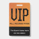 Un concierto retro vintage con todas las tarjetas de identificación para un festival, fiesta, evento, Navidades, Halloween, fiesta nupcial, boda, fiesta de cumpleaños, ducha de bebé, ocasión festiva y más. Tiene un fondo estético naranja acuarela y una mezcla de tipos de letra retro y moderno.