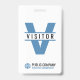 Una moderna tarjeta de identificación de visitante para su empresa, pequeña empresa, escuela u hospital. El diseño sencillo pero elegante muestra la letra mayúscula V con la palabra Visitor. Incluye el nombre y el logotipo de la empresa, así como una línea o eslogan de la marca comercial. Esta tarjeta de identificación de visitante moderna se puede ajustar fácilmente para que funcione como una tarjeta de identificación para los voluntarios.