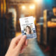 Identificación de foto de identificación con el logotipo de su empresa, foto personal e información de personalizable.