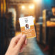 Tarjeta de identificación fotográfica para personalizados/empresa hospitalaria duradera y de alta calidad. En la parte delantera, agregue fácilmente el logotipo de su empresa (o elimine), la foto del empleado, el nombre, el título y la información de identificación. En la parte posterior, agregue líneas adicionales de texto personalizado, es decir, dirección de negocios, correo electrónico, número de teléfono, ubicación de la construcción, etc. También agregue un código de barras, código QR o logotipo de la empresa - o elimine. La placa actual ofrece un esquema de color naranja-oro que puede cambiarse fácilmente a los colores de su empresa.