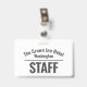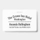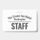 Placa de identidad del personal del hotel. Diseño simple que muestra el nombre y la ubicación del hotel más la palabra "PERSONAL" grande y en negrita en la parte posterior. Placa de identidad del uniforme del personal para empleados del hotel. Lleva la identidad de tu marca a través de la ropa de los trabajadores del hotel. También perfecto para trabajadores de pubs y bares. El nombre del hotel está curvado.
