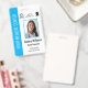 Personalice fácilmente esta insignia azul claro de identificación fotográfica de empleado médico profesional con sus datos personalizados.