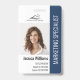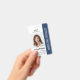 Personalice fácilmente esta identificación fotográfica profesional azul para empleados con sus datos personalizados.