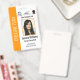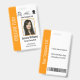Haz que tu equipo se destaque con este diseño de credencial vertical llamativo que presenta una barra de acento vertical naranja en negrita para un toque moderno de color y una identificación clara del equipo. La sección blanca principal ofrece un alto contraste, lo que garantiza que la foto del empleado y todo el texto esencial -nombre, título y detalles de la identificación- sean perfectamente claros. Este diseño también incorpora inteligentemente espacio dedicado para el logotipo de tu empresa y hasta tres pequeños íconos de acreditación o certificación encima de la foto para un acabado profesional.