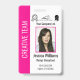 Impulsa la identidad de tu equipo con este diseño de credencial de identificación vertical moderno que presenta una llamativa y vibrante barra de acento vertical rosa caliente que anuncia audazmente el equipo o departamento del personal. El fondo blanco limpio asegura una alta visibilidad para la foto central del empleado y todo el texto esencial, incluyendo su nombre, título e información de identificación. Este diseño único también incorpora espacio para hasta tres pequeños logotipos o íconos de acreditación encima de la marca principal de la empresa para un aspecto dinámico y contemporáneo.