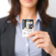 Cree una apariencia profesional con esta clásica placa de identificación 'Notario Público', 'Agente de Firma de Préstamo' personalizada con su foto, nombre y detalles,