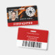 Diseño de Insignia de Identificación de Bombero Moderno. Diseño con llamas de fuego sobre fondo negro, foto, código de barras, nombre de la estación/departamento, nombre e identificación.