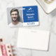 Carné de identificación de empleado con un diseño minimalista limpio en azul, negro y blanco. Agregue una foto del empleado junto con el nombre y la profesión. Personalice aún más con el logotipo de su empresa.
