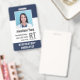 Personalice estas credenciales verticales para personal médico con una foto y nombre del empleado, junto con múltiples campos de texto personalizados para el nombre del hospital o centro de salud, unidad o piso, abreviatura del título, número de identificación del empleado y fecha de validez. El título o cargo aparece en la parte inferior en letras blancas y negrita para una fácil identificación. Personalice con un código de barras en la parte posterior si es necesario, junto con información de devolución u otros detalles.