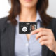 Empresa de fotografía de empleado Id. contable la imagen se intercambia fácilmente por la foto. La plantilla del logotipo le permite cambiar fácilmente a su propio logotipo comercial.