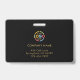 Tarjeta de identificación de empleado horizontal minimalista moderna personalizada en negro y dorado con foto y logotipo de la empresa. Esta elegante tarjeta presenta un logotipo dorado personalizado, nombre y título para un aspecto pulido. Perfecto para empresas que buscan una identidad elegante y cohesionada.