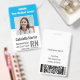 Personalice estas insignias verticales del personal médico con una foto y un nombre del empleado, junto con varios campos de texto personalizado para título o función, unidad o piso, abreviatura de título, número de identificación del empleado y válido hasta la fecha. El centro de salud o el nombre del hospital aparecen en la parte superior con letras en negrita y en blanco. Personalizar con un código de barras en la parte posterior si es necesario, junto con información de devolución u otros detalles.