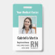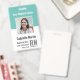 Personalice estas insignias verticales del personal médico con una foto y un nombre del empleado, junto con varios campos de texto personalizado para título o función, unidad o piso, abreviatura de título, número de identificación del empleado y válido hasta la fecha. El centro de salud o el nombre del hospital aparecen en la parte superior con letras en negrita y en blanco. Personalizar con un código de barras en la parte posterior si es necesario, junto con información de devolución u otros detalles.