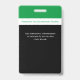 Una insignia de personal profesional para maestros, educadores, personal de su campus escolar. Funciona para todos los tipos de escuelas privadas, públicas, preescolares, primarias, secundarias y universitarias. Tema de color verde, blanco y negro moderno. Agregue la foto del empleado, el título del trabajo y el lema o credo de la escuela.