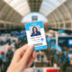 Esta mínima tarjeta vertical de identificación de empleado del hospital incluye tipografía moderna y diseño sencillo. Personalízalo con tu foto, logotipo, nombre, cargo, código de barras y texto personalizado.