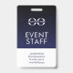 Tarjetas de identificación especiales para personal de eventos que incluyen una plantilla de logotipo que puede reemplazar con el logotipo o gráfico de su empresa o evento. Diseñadas para personal corporativo, de fiestas, conciertos o convenciones y seguridad.