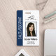 Personalice fácilmente esta identificación fotográfica profesional azul para empleados con sus datos personalizados.