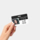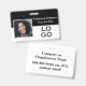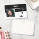 Este distintivo de identificación personalizado presenta un diseño en blanco y negro con una fotografía de muestra a la izquierda del nombre y el título del trabajo. En la parte inferior derecha se coloca un logotipo de empresa o de empresa de ejemplo, que se puede reemplazar con su propio logotipo de personalizado u otra imagen. La parte posterior del identificador de la foto contiene detalles de contacto e información adicional.