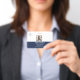 Credenciales de empleado con logotipo corporativo de seguridad de la empresa en horizontal