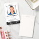 Mantenga seguro su hospital o consultorio médico con identificaciones personalizadas con la foto de sus empleados, nombre, título de trabajo y número de identificación, así como el nombre del negocio. También puede incluir un departamento si lo desea. Perfecto para una enfermera o otro personal. En la parte posterior puede agregar más información, como dónde devolver la identificación si se pierde. Personalícela con una foto y texto personalizado en la barra lateral. La foto cuadrada tiene un borde negro delgado sobre un fondo blanco. El texto es negro excepto el nombre del hospital en la parte inferior que es blanco sobre una banda negra.
