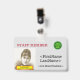 Este nostálgico y clásico diseño de insignias del personal incluye información personalizada, como una foto de retrato, un logotipo de empresa/organización, un nombre de miembro del personal y un nombre de rol. Una insignia como esta podría ser usada para identificar a alguien como miembro del personal de un negocio, empresa u organización. [~Z0000450]