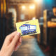 Tarjeta De Identificación Ilustración de dibujos animados de autobús moderno