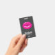Tarjeta de nombre personalizada con un ilustracion con labios rosados calientes. Imagen audaz y vibrante. Fijado sobre un fondo negro con mosaico.