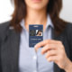 Una insignia comercial personalizada minimalista moderna con logotipo y foto de la empresa. Personalice con su logotipo, foto y detalles para crear su propia y elegante insignia comercial azul y blanca. Personalice aún más con un fondo de color o fuente personalizados.