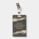 Aumente la profesionalidad de su salón con esta asombrosa tarjeta de identificación de Purpurina negro y oro. Diseñado con un lujoso fondo negro y adornado con brillantes acentos purpurinas dorados, esta placa de identificación ofrece tanto estilo como funcionalidad. La elegante tipografía de escritura complementa el diseño general, lo que lo hace perfecto para salones de lujo y profesionales de la belleza. Personalízalo con tu nombre, foto y detalles del salón para crear una apariencia cohesiva y pulida para tu equipo. Ideal para peinados, maquilladores y expertos en belleza que quieren impresionar duramente a sus clientes.