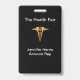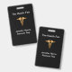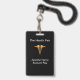 Elegantes insignias para feria de salud con imagen del símbolo caduceo de color dorado y texto que se puede personalizar con el nombre de su evento, nombre de la empresa y/o nombre del representante. Diseñadas para la promoción de la industria de la salud y pueden ser usadas en una convención local o como insignias para el personal de la oficina.
