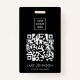 Insignia negra moderna del personal del empleado con una foto, código QR, logotipo de la empresa y nombre y cargo del empleado. Puede personalizar fácilmente con los detalles de su negocio.