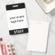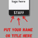 Personalice esta sencilla insignia moderna para el personal del evento con su logotipo. Si su logotipo es cuadrado, ocupará todo el espacio blanco. Si su logotipo no es cuadrado, se mostrará sobre un fondo negro. La parte posterior de la insignia se puede personalizar con el nombre del evento y la fecha o año, o puede eliminar ambos para tener una parte posterior completamente negra. Esta insignia minimalista para el personal es ideal para empleados en eventos especiales, festivales, conciertos y convenciones.