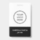 Presenta una apariencia elegante y profesional con este moderno distintivo de identificación de empleado blanco y negro. Con un diseño limpio y minimalista, esta insignia se puede personalizar completamente con el logotipo de su empresa, el nombre del empleado, el título del trabajo, los detalles de contacto y un código QR para un acceso o verificación rápidos. Perfecto para eventos corporativos, uso diario de la oficina o pases para visitantes, esta tarjeta de identificación eleva su marca mientras mantiene las cosas sencillas y elegantes. Haga clic en el botón azul "Personalize" para añadir sus detalles. Diseño de diseños de estudio de Ana Garza/Kardz. Si tiene alguna pregunta, por favor no dude en contactarme a través del Chat Zazzle.