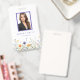 Este diseño presenta un borde de acuarela de flores silvestres en tonos intensos de púrpura, verde, naranja y dorado. Personalice con su nombre e información comercial.