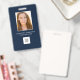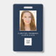 Insígnia de identificación de empleado de color azul marino con logotipo de la empresa. Reemplace la foto con la suya y cambie el texto. Fácil de agregar el logotipo de la empresa. Insígnia de empleado moderna y simple.