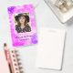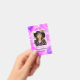 Insignia de identificación de foto de empleado de la espuma púrpura con fondo de chispa púrpura para Salon, Spa, artista de maquillaje, estilista de pelo, empleado, personal. Foto: SnapwireSnaps en Pixabay.com.