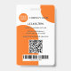 Tarjeta de identificación con foto que muestra la foto y el logotipo de su personalizado en un diseño retro blanco naranja colorido. El área de texto inferior de la parte delantera muestra una forma rectangular, que se puede escalar en el editor avanzado. En la parte posterior puede agregar un código de barras personalizado o código QR y textos adicionales (o eliminar las plantillas). Ideal para crear una presencia llamativa.