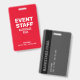 Insignia de identificación del paso de paso del personal del evento rojo. Un botón personalizado con una plantilla editable para eventos especiales. Los empleados pueden utilizarlos como pase de acceso o pase de etapa. Consulte el resto de la colección para ver otras variaciones de diseño.