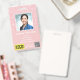 Cargue fácilmente su propio logotipo, foto, código QR o código de barras. Destácate entre la multitud con divertida purpurina en tus insignias de identificación del personal. El texto adicional dice "Totalmente vacunado". La plantilla editable incluye nombre, cargo, calificación, fecha de emisión y validez. Insígnia de identificación fotográfica con código QR y código de barras con personal de purpurina rosa. Vea nuestra colección para más ideas geniales de insignias de identificación fotográfica.
