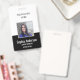Este distintivo fotográfico de identificación del logotipo de la empresa de empleados presenta un diseño contemporáneo con un fondo en blanco y negro.